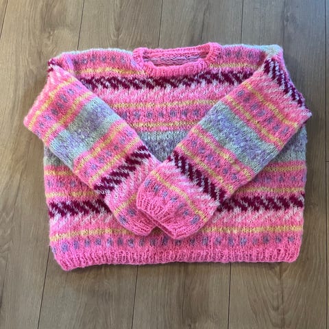 Hjemmestrikket Hanami genser fra Ingrid Raadim selges. Ubrukt.