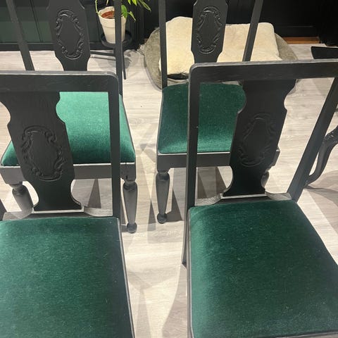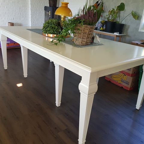 Pent brukt, 8 stoler, med 3 ileggsplater.