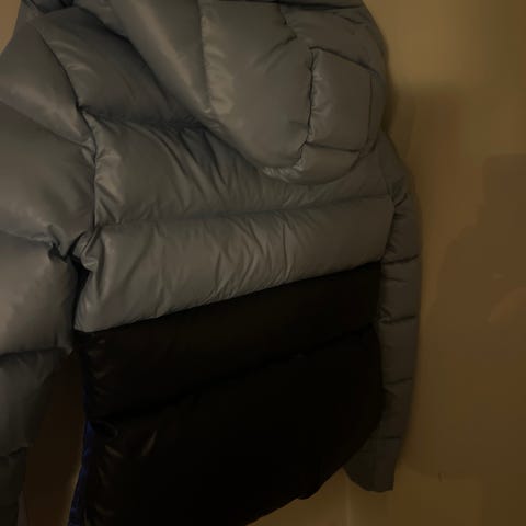 Brukt, med noen merker, små hull ved ermet og sting for reparasjon. Se bilder. God og varm jakke med masse bruk igjen