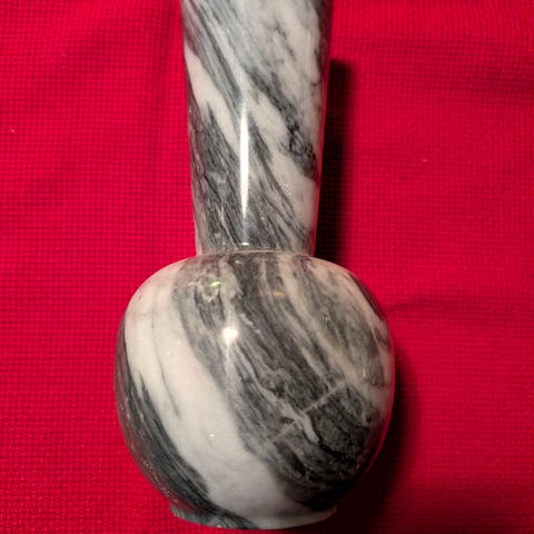 Vintage vase i norsk naturstein selges. Ingen skader eller slitasje av betydning, kun overfladiske aldersmessige bruksmerker og patina. Produsert i Kristiansand. Høgde 12,8 cm Diameter 8 cm.