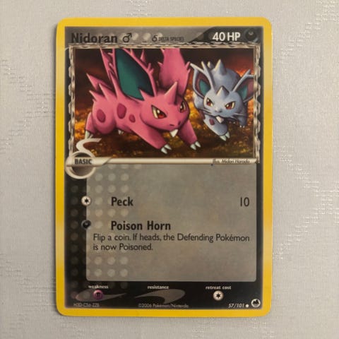 Samling av jumbo pokemon kort, selges flere eldre her som det ikke er så lett å få tak i lengre. Sharpedo og beedrill er litt slitte på baksiden men ikke noe du ser, på framsiden. De andre fremstår i tilnærmet perfekt stand fra det jeg ser