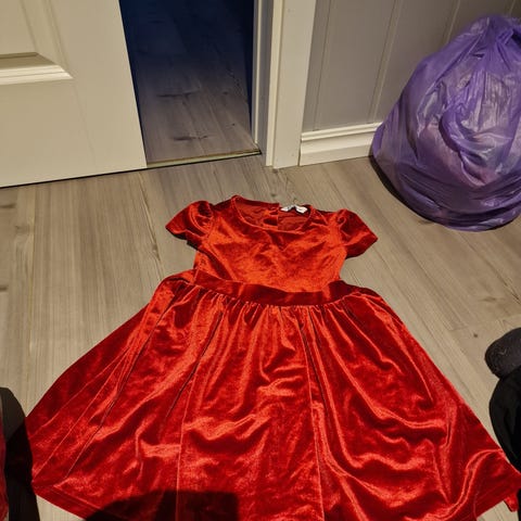 Kjole i rød fløyel, str 98/104. Fra Cubus. Pent brukt, ingen merknader.