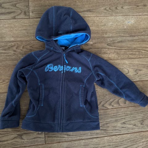 Pent brukt tykk fleecejakke med hette fra Bergans i størrelse 110.