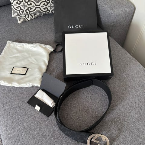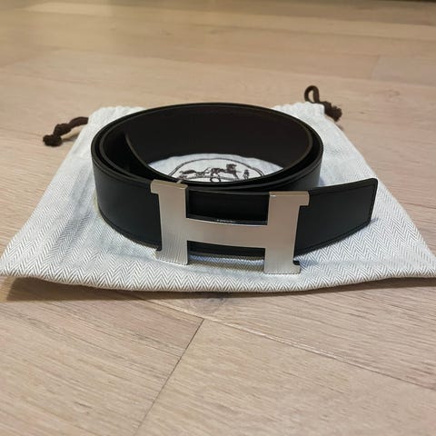 Pent brukt, reversible grå med monogram på ene siden og pure svart på andre. Kvittering finns, følger med boks og pose