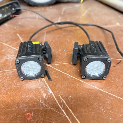2 stykk Strands Siberia Night Ranger 7 LED ekstralys med 7 LED-lys. Følger med relésett og 2 stykk kromme lyktefester for kufanger fra metec(60mm). Ingen kjente feil, kjøpt oktober 2024.
