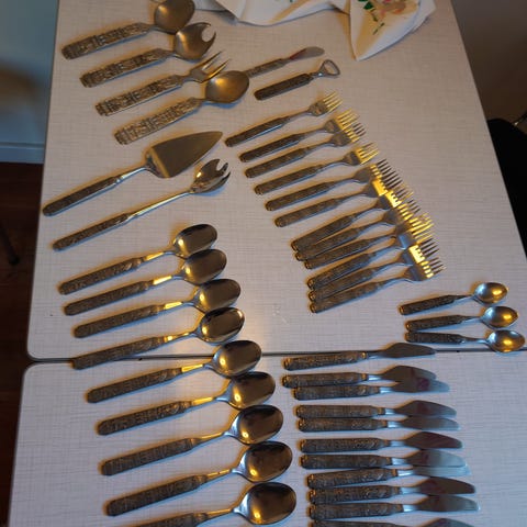 12 spiseskjeer i Kongetinn
