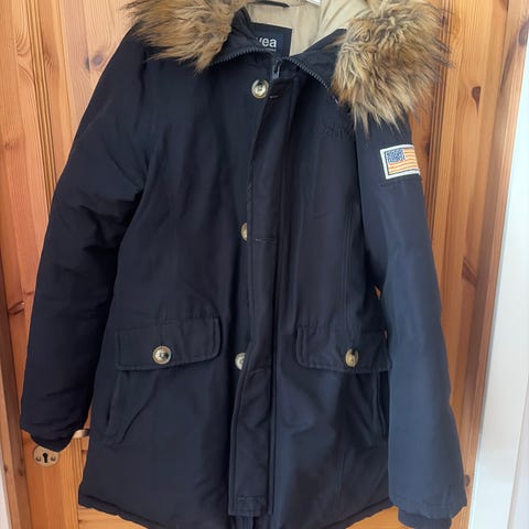 Varm og klassisk dunjakke. Str M. Pent brukt. Nydelig avtagbar pels på hetta. Hele hette kan også tas av. Kjøpt ny for ca 4000, lov å diskutere prisen ))