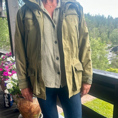 Dovrefjell jaktjakke selges i størrelse 12 år. Jakken passer perfekt til jakt og tur. Jakken er i god stand men har et lite svihull som du kan se på siste bilde. Jakken selges siden den ikke blir brukt lenger. Ta gjerne kontakt om du lurer på noe.