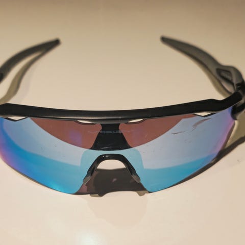 Oakley solbriller for unisex. Brillene har hvit innfatning og oransje speilglass. Leveres med hardt etui og myk pose for oppbevaring.
