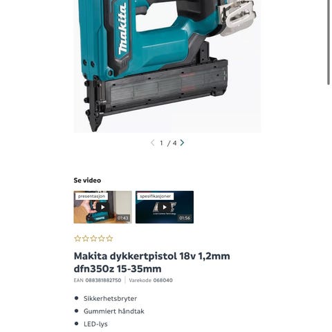 Jeg selger en helt ny og ubrukt gipskutter-maskin fra Makita sin 18V-serie.