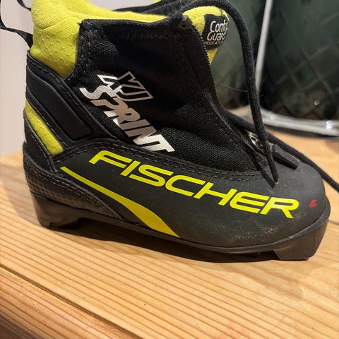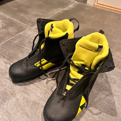 Svært lite brukt Fischer XJ Sprint langrennski støvler i størrelse EU 26. Støvlene har en svart og gul fargekombinasjon og er laget med materialer som gir komfort og støtte for unge skiløpere. Designet for langrenn, med solide såler og snøring for god passform.