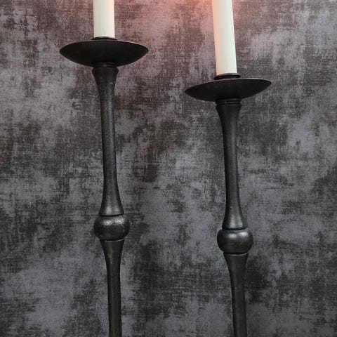 Klassisk, tidløs form med god tyngde og stabil base. Passer perfekt til spisebord, skjenk eller peishylle – både i rustikk, landlig og industriell stil.