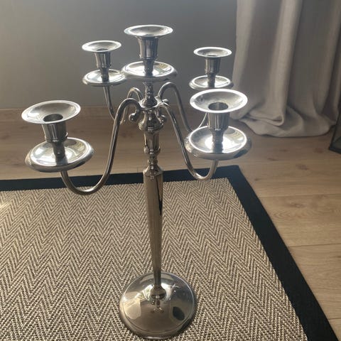 Solid og dekorativ 5-armet lysestake i støpejern.
