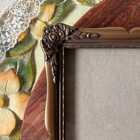 Dekorativt sett med tre vintage bilderammer. Ovale åpninger. Perfekt til bilder eller små trykk. Se bilder for mål. ✨