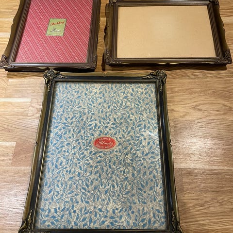Sett med tre små vintage bilderammer. To av rammene kan henges i hverandre. Perfekt til små bilder, pressede blomster eller som ren dekor. Se bilder for mål. ✨