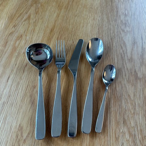 Dragon bestikksett i rustfritt stål. Settet består av 24 deler (6 gafler, 6 kniver, 6 skjeer og 6 teskjeer). Nypris 299kr. Settet er kjøpt i 2018 og er godt brukt. Selger derfor billig. Noen bruksmerker/riper forekommer (se bilder). Kan hentes i Lillehammer eller sendes i posten på kjøpers regning.