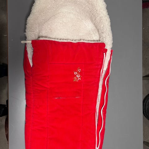 Emmaljunga vognpose i rød farge. Vognposen har quiltet mønster og er designet for å gi ekstra varme og komfort i barnevognen.