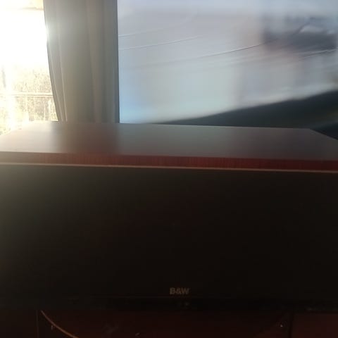 Bowers & Wilkins senterhøyttaler i svart farge. Designet for lydgjengivelse i hjemmekino eller lydsystemer, med fokus på klar tale og balansert lyd.