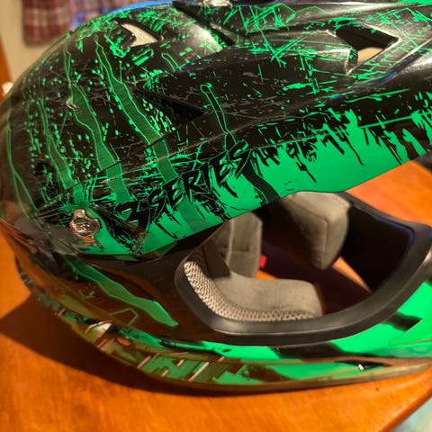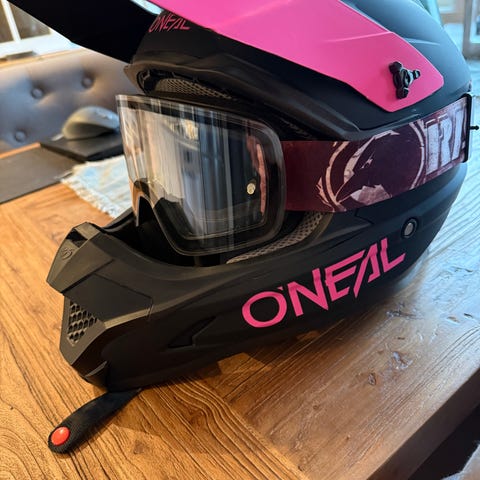 O'Neal MX hjelm i størrelse L (53-54 cm). Hjelmen er litt liten i størrelse - bør prøves. Brystbeskytter beskytter bryst, rygg og skuldre.