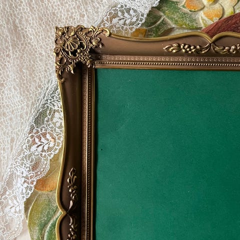 Eldre bilderamme med vakre ornamenterte hjørner. Liten bruksmerke nederst til venstre (se bilde), men dette er lite synlig og påvirker ikke helhetsinntrykket. Se bilder for mål og detaljer. ✨