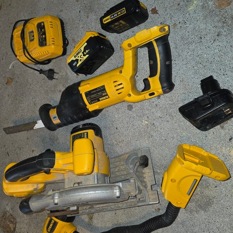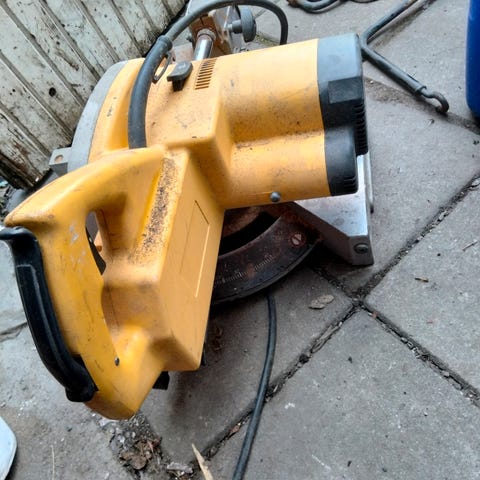 Dewalt DW707 kappsag med sagbord. Det er nytt sagblad, kun brukt noen få ganger. Sagen fungerer helt fint. Sagen har alltid vært lagret inne. Det ene festet til sagbordet er knekt. Clas Ohlsen selger like.