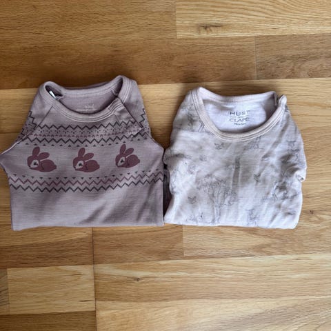 To stk body i str 74 fra Hust&Claire med ull ytterst og bambus innerst. Fint for de med sensitiv hud. 🐑