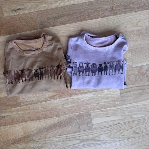To stk body i str 74 fra Hust&Claire med ull ytterst og bambus innerst. Fint for de med sensitiv hud. 🐑