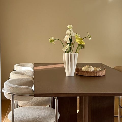 Pen spisegruppe i en nydelig blåfarge. Både stolene og bordet er solid og i god stand. Men en del slitasje i malingen, spesielt påbordflaten og på armlenene. Kan fint pusses og males.