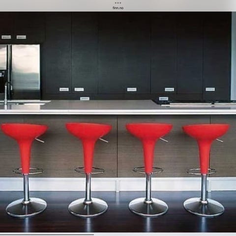 2 stk. pent brukte barstoler som er svingbare og regulerbare i høyden med spak! Fotstøtte. Meget myke og behagelige å sitte på da både sete og rygg er polstret. Sort skinn.