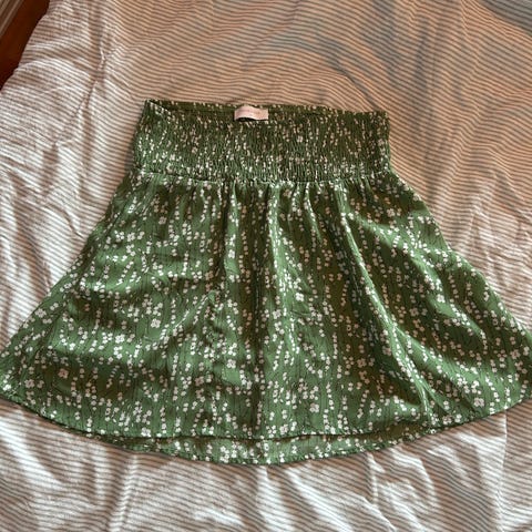 Mamalicious denim skjørt i størrelse L for dame. Skjørtet har et elastisk midjebånd som gjør det behagelig å gå med når magen vokser.
