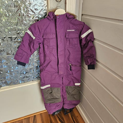 Vind- og vanntett vinterdress fra Didriksons med et slitesterkt ytterstoff. Pent brukt i str 90. Passer til str 92 og 98.