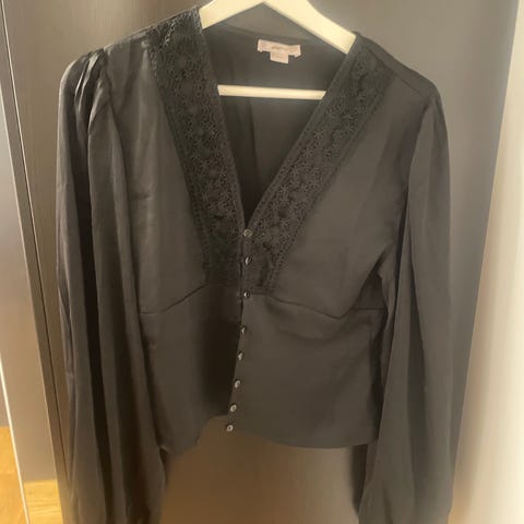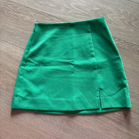 Skjørtet er ubrukt og kun vasket. Str. XS. Midjemål fra side til side er 31 cm, og lengden er 45 cm. Det er noe stretch i stoffet. 98% bomull og 2% elastan.
