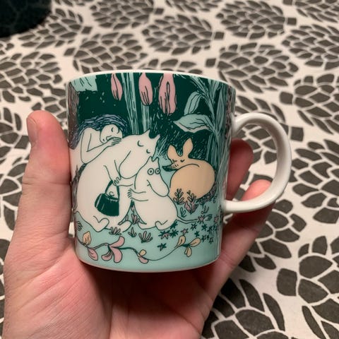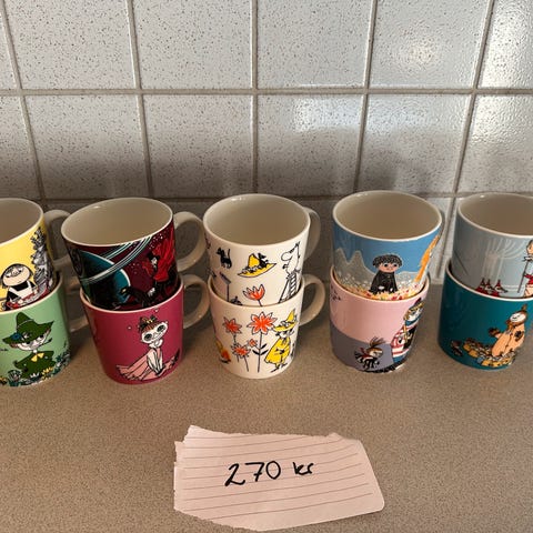 Heilt ny mummikopp selges. Koppen er ny med etikett. Moomin arabia 80 år.