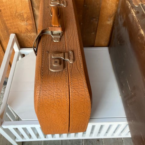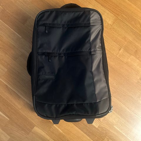 Kjøpt for rundt 4-5 år siden. Brukt til enkelte reiser, men har støvet ned de siste årene. Det er en stoffkoffert som er hard bak og under, men myk på de andre sidene.