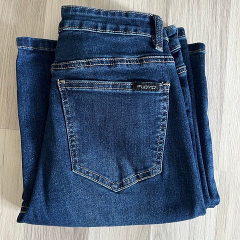 Selger 2 stk jeans fra Floyd. Den ene er mørk og den andre er lys dongeri.