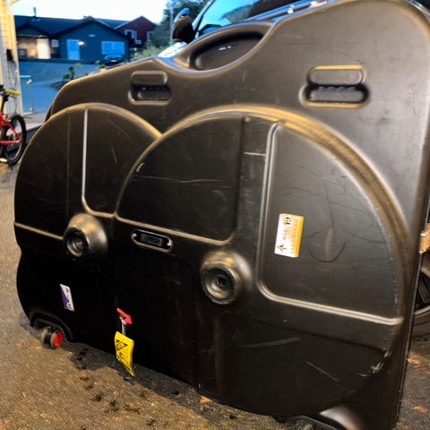 Kofferten fremstår som pent brukt, med normale bruksspor (med en liten rift - se bilde) , men fullt funksjonell og klar for nye reiser. Perfekt for deg som skal på sykkelferie, ritt i utlandet eller bare vil transportere sykkelen trygt.