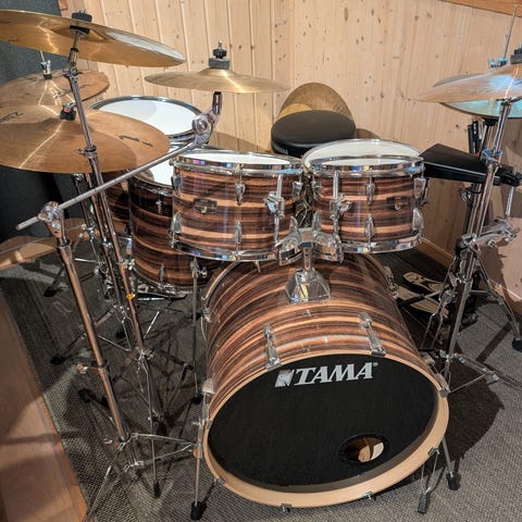 Alt er fortsatt uåpnet og ubrukt i originalemballasje – i praksis et helt nytt trommesett.