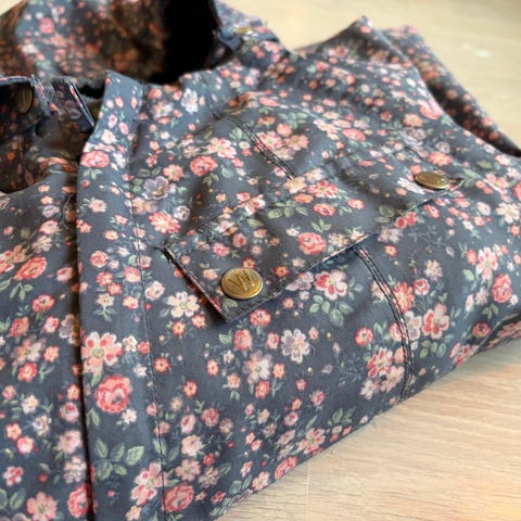 Dressen har dessverre fått noe missfarging forran, men jeg har ikke forsøkt flekkfjerning. Ellers hel og fin - perfekt til litt fuktige, milde dager på vår, sommer eller høst.