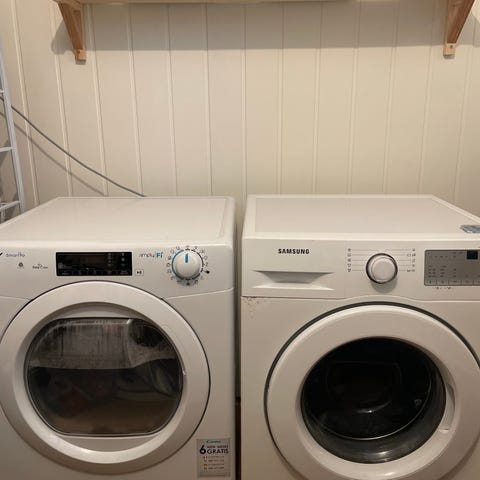 Vaskemaskinen fungerer fint, den har kun noen kosmetiske småskader. Vi har byttet til separat vaskemaskin og tørketrommel.