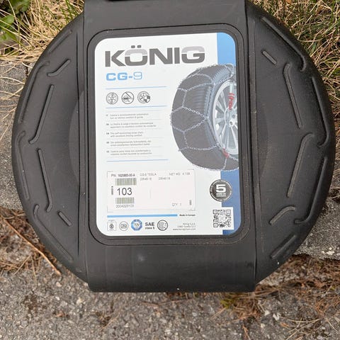 Kjettingene leveres i en boks med instruksjoner.
