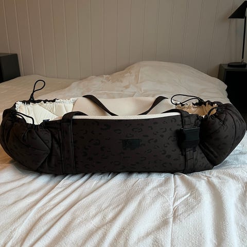 Veldig godt, men pent brukt Najell bærenest i fargen Bouclé White. Brukt til ett barn, men fortsatt mye bruk igjen. Den er vasket, men noen flekker må regnes med. Under vask ble borrelåsen på håndtaket ødelagt, men man kan sy på ny borrelås.