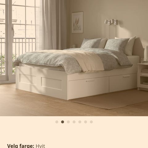 IKEA BRIMNES dagseng med 2 skuffer i hvit farge gis bort. Sengen har plass til 2 madrasser og er laget i tremateriale med lameller for støtte. Egnet for bruk som dagseng eller ekstra soveplass.