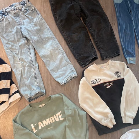 Selger en stor klespakke med mest overdeler i str 122/128. Alle er uten hull og ser greit ut, men noen plagg er brukt mer enn andre. Er klær fra Gulkorn, Cubus, KappAhl, Lindex, Minymo og hm. Alt er vasket med allergivennlig såpe og kommer fra hjem uten dyr/røyk. Må hentes i Holmestrand