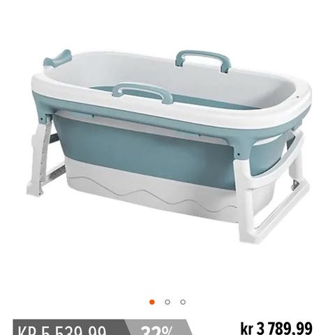 Sammenleggbart badekar. Pent brukt. Nakkestøtte følger med. Ene fotrullem mangler