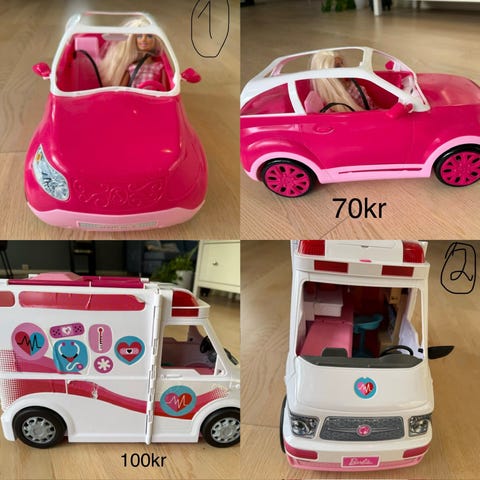 barbie og masse utstyr til barbie