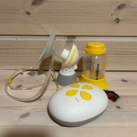 Medela elektrisk brystpumpe med tilbehør bestående av pumpeenhet, brystskjold, flaske og slange. Som ny