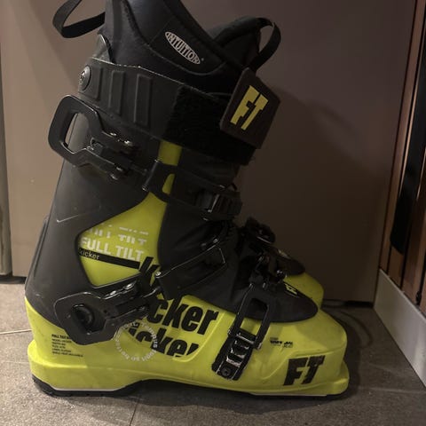 Full Tilt Kicker alpinstøvler i gul og svart farge. Størrelse 27,5. Designet for alpinski.