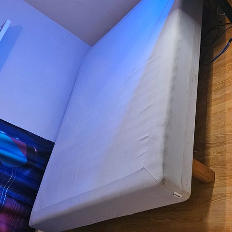 Str 150/200 seng gies bort Har ligget mest på den ene sia, den andre som ny. Kan deles opp t 2 senger str 75/200.Må hentes slutten av Januar først på Februar. Hentes på Heimdal