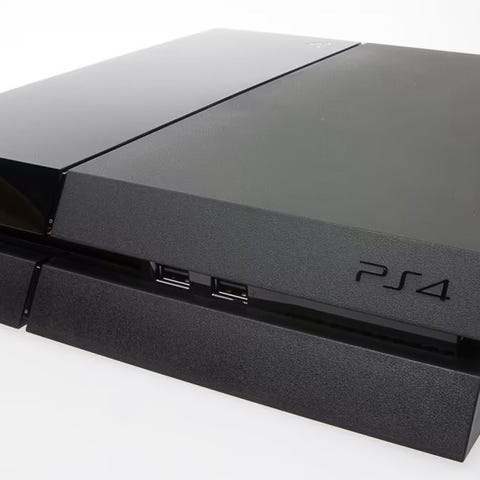 Sony Playstation 4 spillkonsoll i svart farge. Konsollen er designet for bruk med Playstation 4-spill og har standard funksjoner for denne konsolltypen.