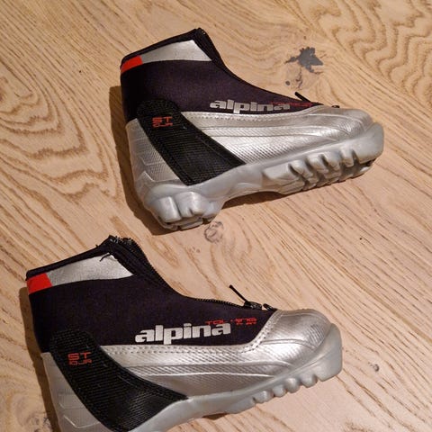 Alpina skisko i svart farge. Skiskoene har snøring og glidelås for enkel på- og avkledning. Kun brukt et par ganger. Ullsåler følger med. Må hentes.